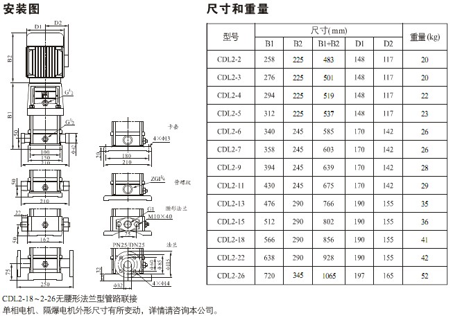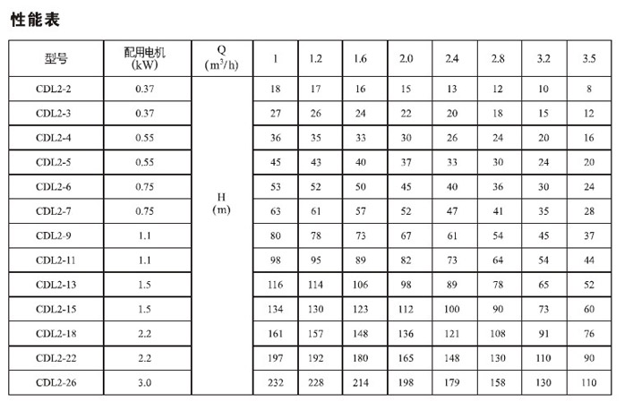 產(chǎn)品介紹 CDLF2-20FSWSC 不銹鋼耐腐蝕多級離心泵是一種多功能產(chǎn)品,可以輸送從自來水到工業(yè)液體的各種不同介質(zhì),適應(yīng)于不同溫度、流量和壓力范圍,CDL適用于無腐蝕性液體,CDLF適用于輕度腐蝕性液體。 水:水廠過濾與輸送、水廠分區(qū)送水、主管增壓、高層建筑增壓。 工業(yè)增壓:流程水系統(tǒng)、清洗系統(tǒng)、高壓沖洗系統(tǒng)、消防系統(tǒng)。 工業(yè)液體輸送:冷卻和空調(diào)系統(tǒng)、鍋爐給水和冷凝系統(tǒng)、機床配套、酸和堿。 水處理:超濾系統(tǒng)、反滲透系統(tǒng)、蒸餾系統(tǒng)、分離器、游泳池。 灌溉:農(nóng)田灌溉、噴灌、滴灌。 運行條件 稀薄、干凈、非易燃易爆并不含固體顆粒或纖維的液體。 液體溫度:常溫型 -15℃至+70℃ 熱水型 -15℃至+120℃ 環(huán)境溫度:最高+40℃ 海拔:最高1000m CDLF2-20FSWSC 不銹鋼耐腐蝕多級離心泵為安裝標準電機的非自吸式多級離心泵,電機軸通過泵頭用軸聯(lián)器直接與泵軸連接,拉桿螺栓將耐壓筒、過流部件固定在泵頭和進出水段之間,泵進出水口在泵底同一直線上;本泵可根據(jù)需要配置智能保護器,對泵干轉(zhuǎn)、缺相、過載等進行有效保護。 電機 電機為全封閉,風(fēng)冷式二極標準電機。 防護等級:IP55 絕緣等級:F 標準電壓, 50Hz ![]() ![]() ![]() 因產(chǎn)品生產(chǎn)批次、型號不同,產(chǎn)品圖片及安裝尺寸僅供參考,詳情可聯(lián)系我們的銷售人員了解更多CDLF2-20FSWSC 不銹鋼耐腐蝕多級離心泵相關(guān)信息!