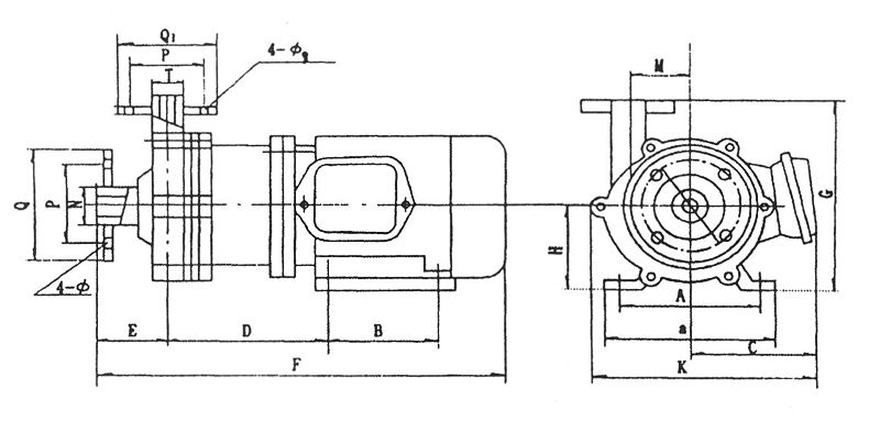 16CQ-8不銹鋼磁力驅動泵 安裝尺寸表與示意圖
