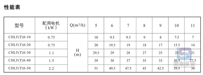 產(chǎn)品介紹 CHLF8-40LSWSC輕油增壓泵非自吸離心泵是渤泉泵業(yè)制造有限公司制造的主導(dǎo)產(chǎn)品,配加長(zhǎng)軸電機(jī)采用了免修機(jī)械密封,緊湊式結(jié)構(gòu)使泵尺寸很小,軸向入口和徑向出口。輕型段式多級(jí)離心泵的過(guò)流部件均采用不銹鋼材料(304或316)制成,輕型不銹鋼多級(jí)離心泵具有低噪音,耐輕腐蝕,外形美觀、體積小、重量輕、使用壽命長(zhǎng)等特點(diǎn),不同材質(zhì)的硬質(zhì)合金密封,保證了不同介質(zhì)輸送均無(wú)泄漏;噪音低:兩個(gè)低噪音軸承下的水泵,運(yùn)轉(zhuǎn)平穩(wěn),除電機(jī)微弱聲響,基本無(wú)噪聲;故障率低:結(jié)構(gòu)簡(jiǎn)單合理,整機(jī)無(wú)故障工作時(shí)間大大提高。采用國(guó)內(nèi)優(yōu)秀水力模型優(yōu)化設(shè)計(jì)而成,是理想的新一代高效節(jié)能輕型臥式多級(jí)離心泵。采用了免修機(jī)械密封。輕型段式多級(jí)離心泵的過(guò)流部件均采用不銹鋼材料(304或316)制成,具有低噪音,耐輕腐蝕,外形美觀、體積小、重量輕、使用壽命長(zhǎng)等特點(diǎn)。 二、應(yīng)用范圍: CHLF8-40LSWSC輕油增壓泵主要用于家庭型中央空調(diào)循環(huán)及工業(yè)上液體的傳輸。如脫礦物質(zhì)水、軟水、凈化系統(tǒng)、輕油等的循環(huán)和增壓。 1)小型中央空調(diào)循環(huán) 2)冷卻系統(tǒng) 3)工業(yè)清洗 4)水處理(水的凈化) 5)水產(chǎn)養(yǎng)殖 6)施肥/計(jì)量系統(tǒng) 7)環(huán)境應(yīng)用 三、工作條件: 稀薄、干凈、不凝、不爆炸、不含固體顆粒或纖維的液體。 液體溫度: 常溫型-15℃至+70℃ 熱水型+70℃至+110℃ 最大環(huán)境溫度:+40℃ 最大運(yùn)作壓力:10巴 最大進(jìn)口壓力受最大運(yùn)作壓力限制 介質(zhì)酸堿性:PH4~9 四、輸送液體: 1、稀薄、清潔、不含固體顆粒或纖維的非易燃易爆液體。 2、泵可以輸送諸如礦泉水、軟化水、純水、清油和其它輕化工介質(zhì)。 3、當(dāng)輸送液體的密度或粘度大于水,如需要,必須配用大功率電機(jī)。 4、泵是否適用于某一特定液體由多種因素決定,其中最重要的是氯含量、PH值、溫度和溶濟(jì)、油的含量等。 五、曲線條件: 下述條件適用于后面所示性能曲線。 1、所有曲線都基于電機(jī)在恒速2900rpm的測(cè)量值。 2、曲線容差符合ISO9906,附錄A。 3、測(cè)試采用20℃不含空氣的水,運(yùn)動(dòng)粘度為1mm2/s。 4、泵的使用參照加粗曲線的性能范圍,以防流量過(guò)小產(chǎn)生過(guò)熱和流量過(guò)大使電機(jī)過(guò)載等。 六、電機(jī): CHLF8-40LSWSC輕油增壓泵電機(jī)為全封閉,風(fēng)冷式二極電機(jī) 防護(hù)等級(jí):IP55 絕緣等級(jí):F 標(biāo)準(zhǔn)電壓, 50Hz: 1×220-240V 3×220-240V 380-415V ![]() 因產(chǎn)品生產(chǎn)批次、型號(hào)不同,產(chǎn)品圖片及安裝尺寸僅供參考,詳情可聯(lián)系我們的銷售人員了解更多CHLF8-40LSWSC輕油增壓泵相關(guān)信息!