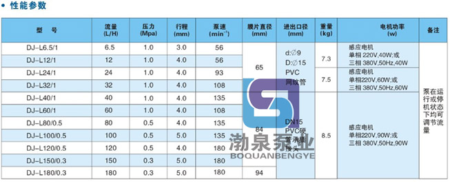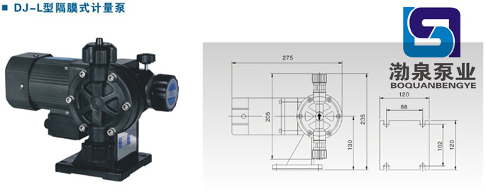 產品介紹 DJL120/0.5耐腐蝕計量泵是由電機驅動的機械隔膜計量泵,適用于底壓力場合的流體精確計量,有多種材質泵頭可選,膜片統一采用多層復合PTFE材質。因其具有很高的計量精度和穩定性能及極高的使用工求,而廣泛應用于污水處理,食品劑添加,各種特殊介質的輸送。 DJL120/0.5耐腐蝕計量泵工作條件: 流量范圍:0-500L/H 壓力范圍:0-1.0MPa 驅動方式:電機驅動 控制方式:手動、自動控制 環境溫度: -30℃ ---60℃ 電機: 二相、三相標準電機或防爆電機 功率:40W,60W 防護等級:IP54 材料: 計量泵頭: 聚氯乙烯、SUS304、SUS316、聚四氟乙烯 計量閥: 聚氯乙烯、SUS304、SUS316、聚四氟乙烯 閥球: 二氧化硅、SUS304、SUS316、陶瓷 密封: 聚四氟乙烯、聚氯乙烯。 DJL120/0.5耐腐蝕計量泵產品特點: 構造上,完全無泄露。 可用PVC、PTFE、PVDF、304不銹鋼、316不銹鋼等作為泵頭材料。 適用于各種耐酸堿藥液。 可以安裝于藥槽上。 安裝容易、維修、保養簡便。 操作安全性能高。 運轉中流量隨意調整。 ![]() 因產品生產批次、型號不同,產品圖片及安裝尺寸僅供參考,詳情可聯系我們的銷售人員了解更多DJL120/0.5耐腐蝕計量泵相關信息!