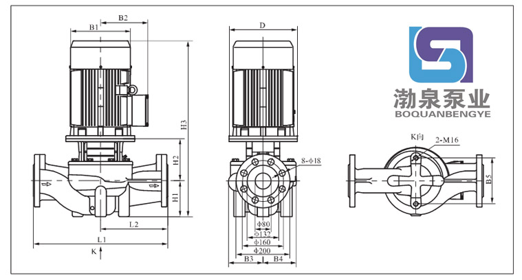 產品介紹 TD80-67/2 立式離心泵采用電機與泵可分離式結構,泵部分設計為可拉出形式。所有的該類產品都配有標準電機和機械密封。電機為全封閉、風冷式標準電機。其主要尺寸符合JB/T8680標準。 產品泵體相當于一段管路。在泵進行維修時,可以用盲法蘭將泵體封堵,從而不影響系統的正常運行。 產品的聯接法蘭尺寸符合GB/T17241.6或IS07005-2/DIN2501標準中PN16時的有關規定。 產品的進出口直徑符合有關標準尺寸。 產品的泵頭是聯接電機和泵的裝置。其與泵體之間的密封件采用“〇”形圈。 TD80-67/2 立式離心泵配有標準電機和機械密封。此類管道泵產品的結構與相近類型產品相比,更不易受到泵送液體中雜質的影響。 產品設計為頂部可拉出的拆裝形式,其可以在不影響管路系統的情況下對泵進行維護。 應用 產品適宜在清潔、稀薄、非侵蝕、非易爆易燃,且不含有任何可能對泵造成機械或化學損害的固體顆粒和纖維的液體中使用。具體對液體要求及應用如下;而在液體粘稠或密度較大情況下使用時會造成泵特性曲線的下降和能耗的增加。 液體溫度:-15℃~110℃ 系統最高壓力:常規型為PN12巴;特殊型為PN16巴。 TD80-67/2 立式離心泵產品在用于輸送水時,其可以用于生活用水、工業用水、冷卻系統用水和區域供熱系統的冷、熱用水。TD離心泵產品可以在以下位置使用: ·主循環泵 ·混合環路中的泵 ·鍋爐混流泵 ·燃氣冷凍機泵 ·部分流量過濾器泵 ·定壓系統用泵 ·生活熱水循環 TD80-67/2 立式離心泵產品用于工業方面。如在化工、制藥、食品加工等行業。可以用于: ·原料的輸送 ·系統增壓泵 ·混合環路循環泵 ![]() ![]() 因產品生產批次、型號不同,產品圖片及安裝尺寸僅供參考,詳情可聯系我們的銷售人員了解更多TD80-67/2 立式離心泵相關信息!