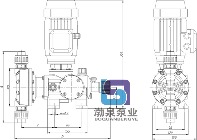 產品介紹 KD80/0.6 PVC材質隔膜計量泵產品介紹 流量范圍:0-180 L/H 壓力范圍: 0-0.8 MPA 電機功率: 180W,220V / 380V / 420V , 50/60Hz 驅動系統: 兩相、三相標準電機或防爆電機 流量控制: 手動控制, 防護等級: IP55 材料 泵頭: SUS304, SUS316, PVC, PTFE 隔膜: PTFE 單向閥: SUS304, SUS316, PVC, PTFE 閥球: ZrO2, SUS304, SUS316, 陶瓷 工作條件 環境溫度: -30℃ --- 80℃ 計量泵技術參數