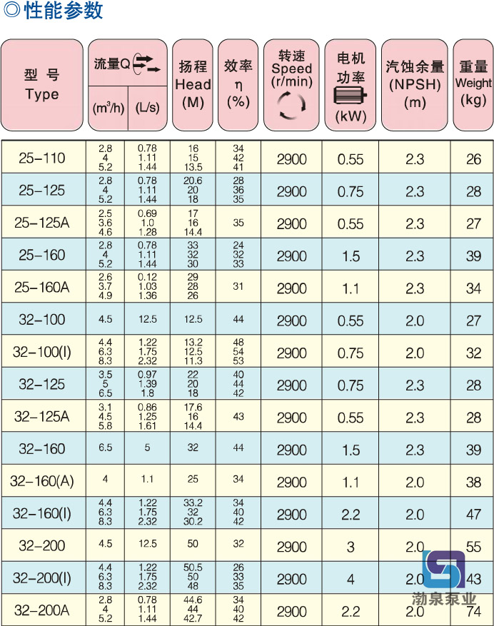 IHG32-125立式化工離心泵供輸送不含固體顆粒,具有腐蝕性,粘度類似于水的液體,適用于石油、化工、冶金、電力、造紙、食品制藥和合成纖維等部門,使用溫度為-20℃~+120℃。 二、主要特點: 1、立式管道離心泵結構緊湊、體積小、外形美觀,其結構決定安裝占地面積小,如加上防護罩可置于戶外使用。 2、葉輪直接安裝在電機軸上,從而保證泵的同心度,因而增強了泵的運行穩定性和延長泵的使用壽命。 3、軸封采用機械密封或機械密封的組合,采用優質的硬質合金密封環,增強了密封的耐磨性,能有效地延長泵的使用壽命。 4、安裝檢修方便,無需拆動管路系統。泵進口和出口為相同口徑,簡化了管道的連接。 5、可根據流量和揚程的需要采用泵的串聯、并聯運行方式。 6、可根據需要,吸入口和吐出口可安裝成同方向或90°、180°、270°幾個不同方向以滿足不同的連接場合。 7、揚程可根據需要增減水泵級數并結合切割葉輪外徑予以滿足,而不改變安裝占地面積,這是其它泵類所不具有的。 三、主要用途: 1、ISG立式管道離心泵供輸送清水及物理性質類似于清水的其它液體之用,適用于工業和城市給排水、高層建筑增壓送水、園林噴灌、消防增壓、遠距離送水、采暖、浴室等冷暖水循環增壓及設備配套等。使用溫度T<80℃。 2、IRG(GRG)型立式熱水(高溫)熱水循環泵,適用于能源、冶金、木材加工、化工、紡織、造紙及飯店、浴室、賓館等鍋爐熱水增壓循環輸送及城市采暖系統循環用泵,IRG使用介質溫度不超過120℃,GRG型使用介質溫度不超過240℃。 3、IHG型立式管道化工泵,供輸送不含固體顆粒,具有腐蝕性,粘度類似于水的液體,適用于石油、化工、冶金、電力、造紙、食品制藥和合成纖維等部門,使用溫度為-20℃~+120℃。 4、IHGB型不銹鋼防爆型化工離心泵,適用于輸送易燃易爆性化工液體。 5、YG立式管道油泵供輸送汽油、煤油、柴油等石油產品,被輸送介質溫度為-20℃~+120℃。 6、ISGD、IRGD、GRGD、IHGD、YGD、IHGBD型立式低轉速離心泵,適用于環境聲要求很低的場合及空調循環等。 四、工作條件: 1、吸入壓力≤1.0Mpa,或泵系統最高工作壓力≤1.6Mpa,即泵吸入口壓力+泵揚程≤1.6Mpa、泵靜壓試驗壓力為2.5Mpa,科西德泵閥ISG型管道離心泵訂貨時請注明系統工作壓力。泵系統工作壓力大于1.6Mpa時應在訂貨時另行提出。以便在制造時泵的過流部件和聯接部分采用鑄鋼材料。 2、所輸送介質中固體顆粒體積含量不超過單位體積的0.1%,粒度<0.2mm. 注:如使用介質為帶有細小顆粒,請在訂貨時說明,以便采用耐磨式機械密封。 3、環境溫度<40℃,相對濕度<95%。 注:如使用介質為帶有細小顆粒,請在訂貨時說明,以便廠家采用耐磨式機械密封。 五、結構說明: 1、泵與電機同端蓋,軸向尺寸縮短,結構簡單。 2、泵體上設有取壓孔和放水孔。 3、泵體上設有排氣閥,工作前能排放泵內空氣。 4、泵體底部設有安裝底板和螺栓孔,保證整體機組安裝穩固。