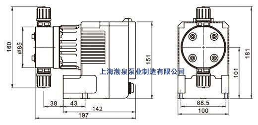 型 號 | 流量 L/h | 壓力 Bar | 沖程 mm | 頻率min-1 | 膜片 規格 | 功率 w | 電壓 V/Hz | 進出口徑聯接方式 |