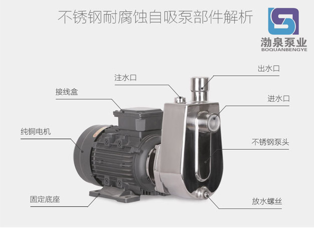 不銹鋼自吸式耐腐蝕離心泵可輸送溫度不高于103℃,含有細(xì)小軟顆粒或纖維質(zhì),帶腐蝕性或有衛(wèi)生要求的液體,廣泛適用于食品、飲料、醫(yī)藥、污水處理、化工、電鍍、漂染、精細(xì)化工等行業(yè)使用。