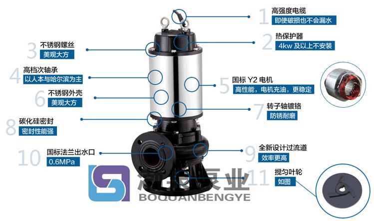 自動攪勻排污泵是在普通排污泵的基礎(chǔ)上采用自動攪拌裝置,該裝置隨電機(jī)軸旋轉(zhuǎn),產(chǎn)生極強(qiáng)的攪拌力,將污水池內(nèi)的沉積物攪拌成懸浮物,吸入泵內(nèi)排出,是具有明顯的先進(jìn)性和用性的環(huán)保產(chǎn)品。 YWQ、JPWO系列自動攪勻排污泵是在普通排污泵的基礎(chǔ)上采用自動攪拌裝置,該裝置隨電機(jī)軸旋轉(zhuǎn),產(chǎn)生極強(qiáng)的攪拌力,將污水池內(nèi)的沉積物攪拌成懸浮物,吸入泵內(nèi)排出,提高了泵的防堵、排污能力,一次性完成了排水、清污、除淤、節(jié)約了運行成本,是具有明顯的先進(jìn)性和用性的環(huán)保產(chǎn)品。