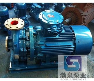 四、防爆管道離心泵ISWB50-125 產品特點: 運行平穩:泵軸的絕對同心度及葉輪優異的動靜平衡,保證平穩運行,絕無振動。